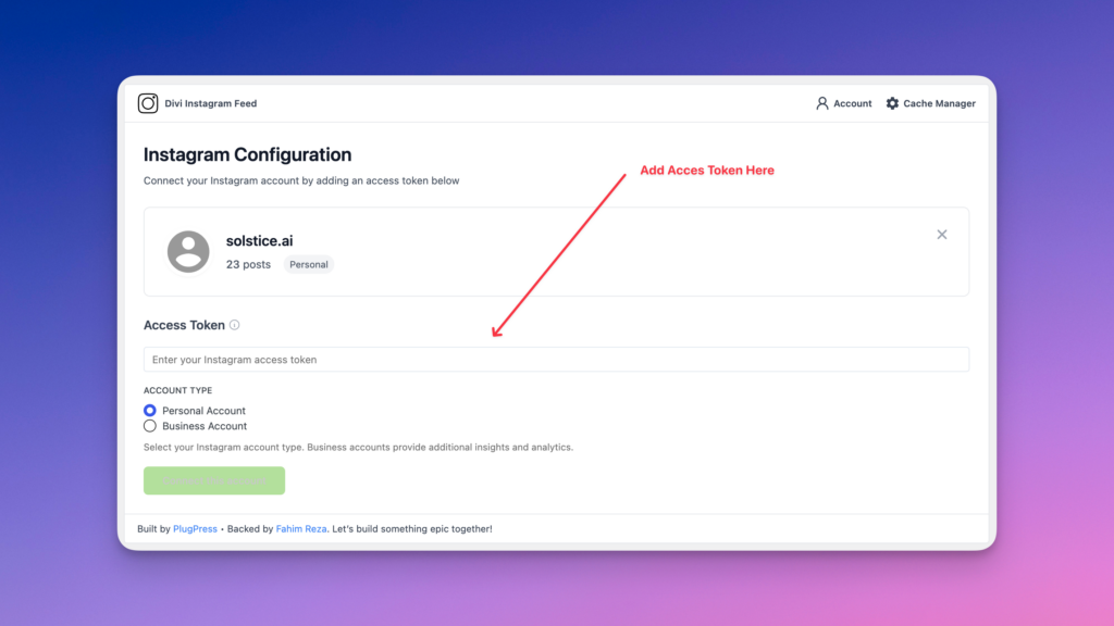 - Enter your Instagram Access Token